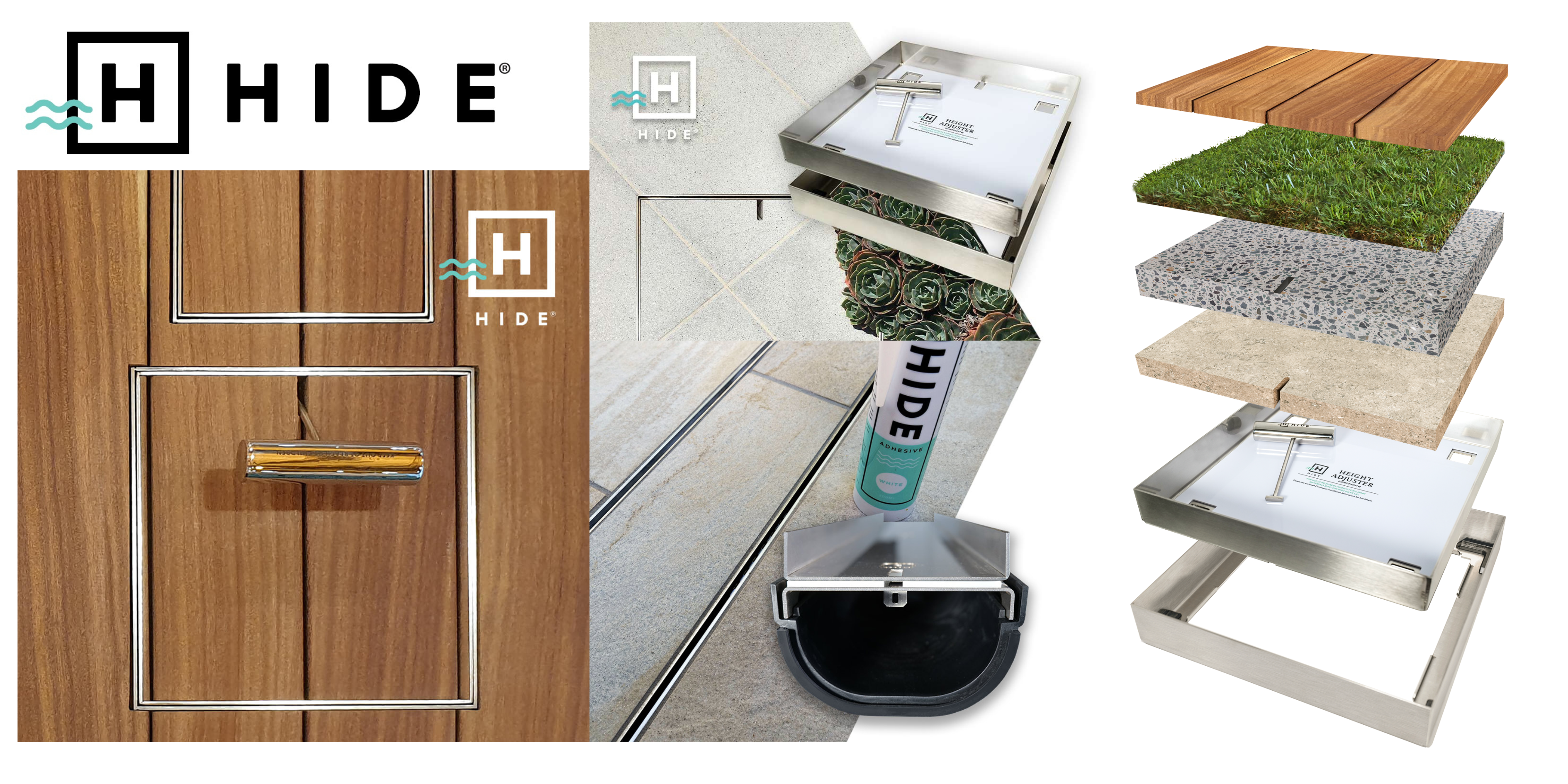 HIDE Skimmer Lids range of inlay lids for skimmers, drain and access points have revolutionised landscaping options – transforming those traditional eyesore spots into hidden no-shows. This is achieved by fitting the HIDE lid with materials which match that of the surrounds. HIDE skimmer box lids and access covers are designed to prevent chips or breakages in stone or tiled areas, can be fitted easily on-site, and provide a luxury, flush finish to your landscaping project. The HIDE lid allows for a sophisticated, integrated finish in your landscape project – whether it be a pool, patio or outdoor area.