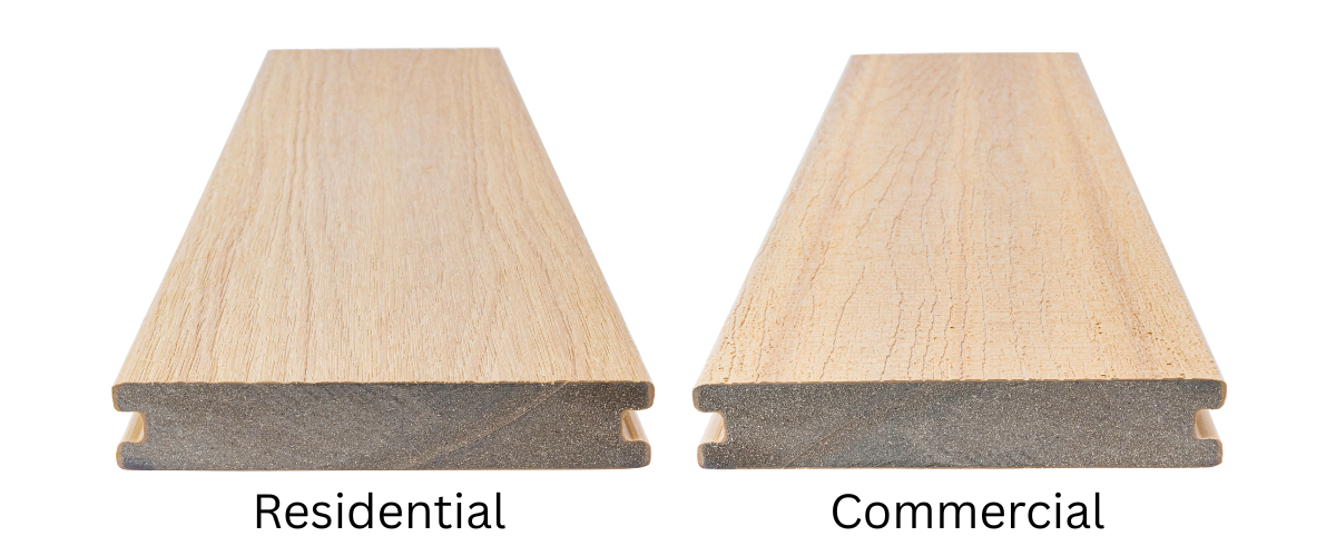 The top of the NewTechWood decking boards has wood grained embossed finish to give a more natural look and feel. You can also choose another, deep brushed finish.